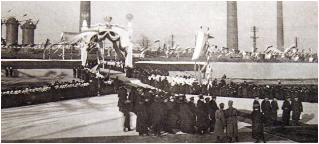 Потом Николай II посетил Брянский завод, который в 1915 году обеспечивал армию оружием, снарядами и техникой. Император интересовался условиями труда рабочих, изучал производственные мощности и техническое оснащение предприятия. Впечатления от увиденного остались положительными, о чем он позже писал в своем дневнике. Не обошлось и без подарков. От Преображенского кафедрального собора царь получил икону святого Георгия Победоносца, а в царскую казну екатеринославские купцы, предприниматели и меценаты передали более 258 000 рублей – огромные на то время деньги. Их собрали на нужды фронта.