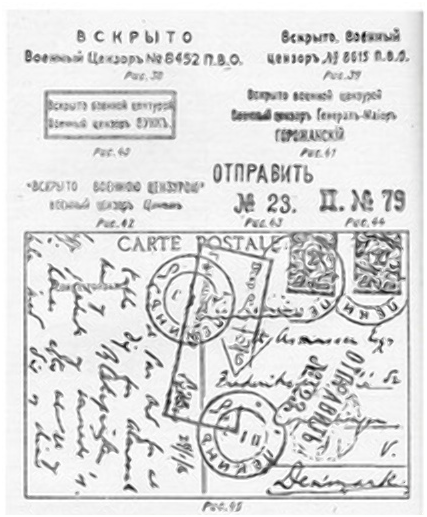 У липні 1914 року після проголошення Німеччиною війни Російській імперії цар Микола ІІ підписав законопроєкти “Тимчасове Положення про воєнну цензуру” та “Перелік свідчень і зображень, які стосуються зовнішньої безпеки Росії та її воєнно-морської та сухопутної оборони, оголошення та поширення яких у промовах, доповідях, що проголошуються на публічних зборах, забороняється”. Головним було перекрити супротивнику доступ до важливої інформації про обороноздатність країни та армії. Проходити цензуру мали всі поштові відправлення без винятку. В армії за цензуру відповідало військове командування, а в тилу – Головна воєнно-цензурна комісія.